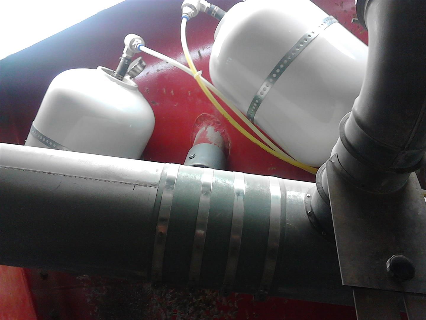 S priklopitvijo razvodnika  izpustimo zrak iz tlačnega voda med razvodnikom in hitroizpustnim ventilom.  Zato se odpre izhodna odprtina v atmosfero pri hitroizpustnem ventilu in skoznjo se izprazni komora. Ker je tlak v komori padel, se zaradi razlike pritiskov zelo hitro premakne bat proti plošči in komprimiran zrak iz tlačne posode z veliko hitrostjo in s tem kinetično energijo vdre v izhodno cev, ki je napeljana v silos.