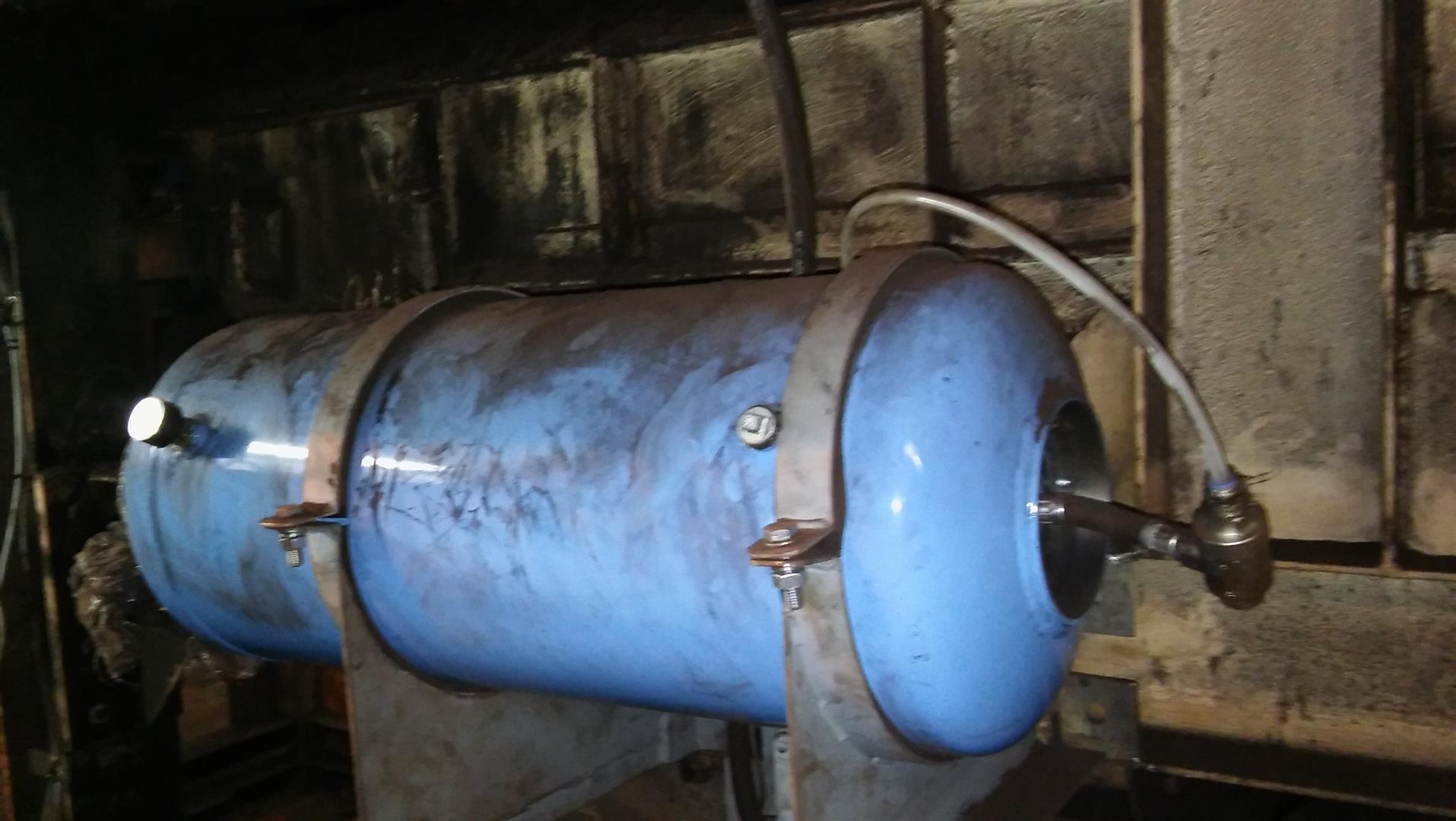 Celotna tlačna posoda  je napolnjena s kornprimiranim zrakom in pripravljena za uporabo “strel”.